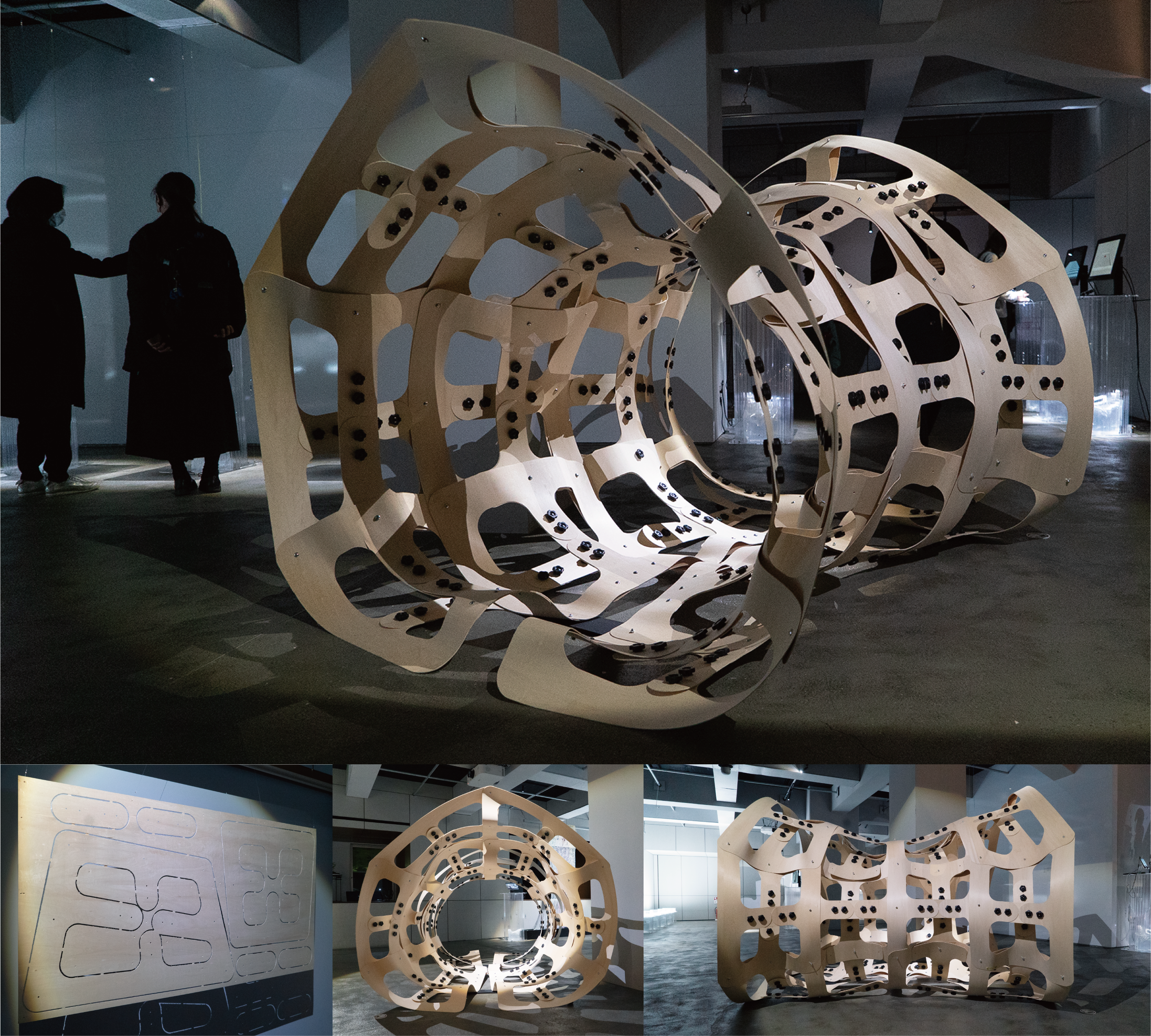 We propose TensionFab, a novel technique for creating shape-changeable room-scale structures. This method employs easily available planar materials (plywood, MDF), cuts them into multiple 2D shapes, and then connects the pieces manually to create a unified structure capable of 2D and 3D deformations. Constructed TensionFab structures are characterized by easy achievability of target surfaces, substantial structural strength, shape changeability, time and material savings, and easy storage and transportation. In this paper, we introduce the basic principles of shape-making, module combination, and structural characteristics of TensionFab. We also developed a design assistance tool to allow users to automate design based on the target shape. We evaluate the design results for shape validation and structural performance. Finally, we validate the approach with actual construction and propose a variety of application scenarios. Overall, TensionFab is an efficient strategy for spatial design and structural organization. This paper contributes to research and exploration in the HCI room-scale interaction field.