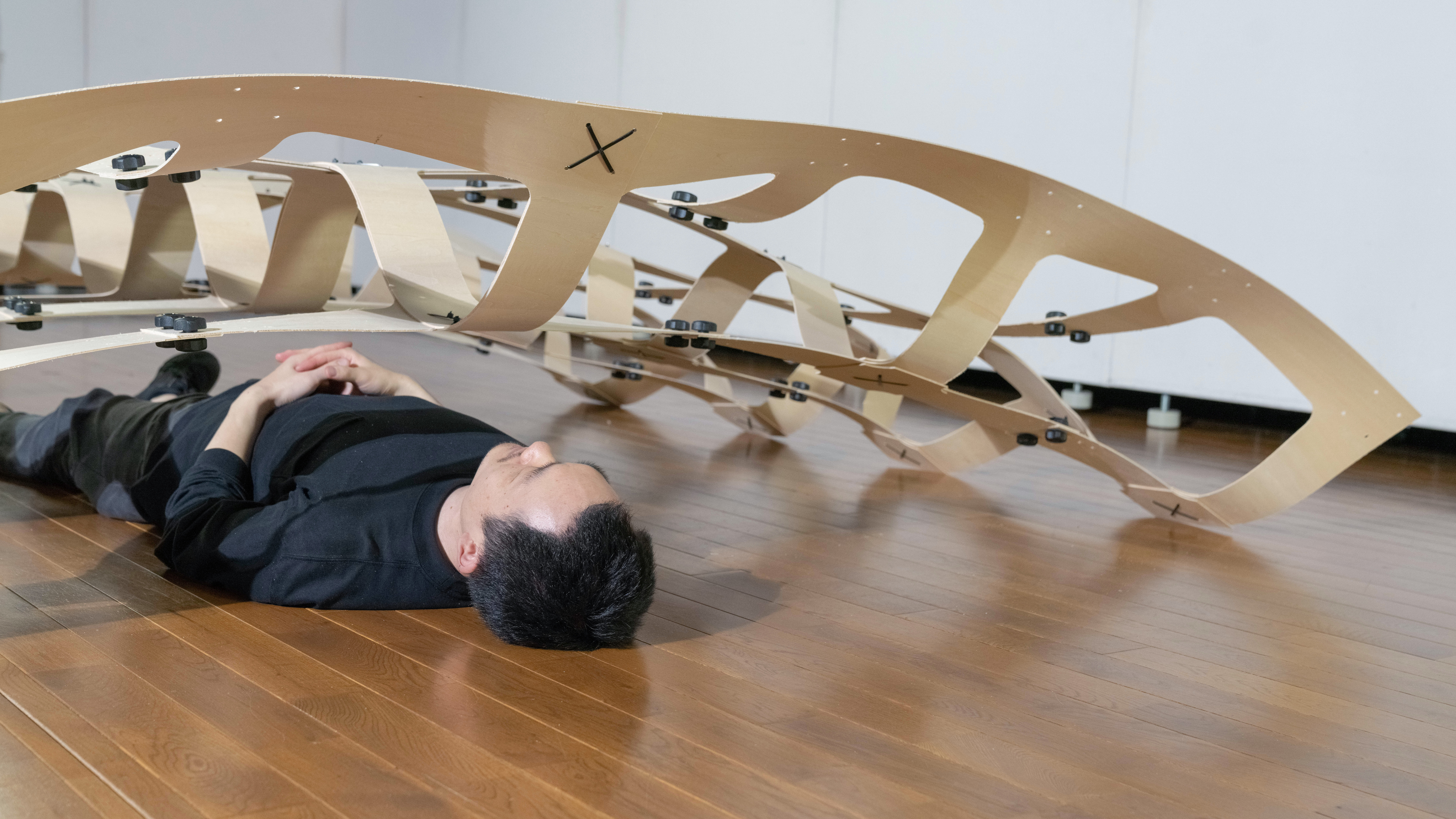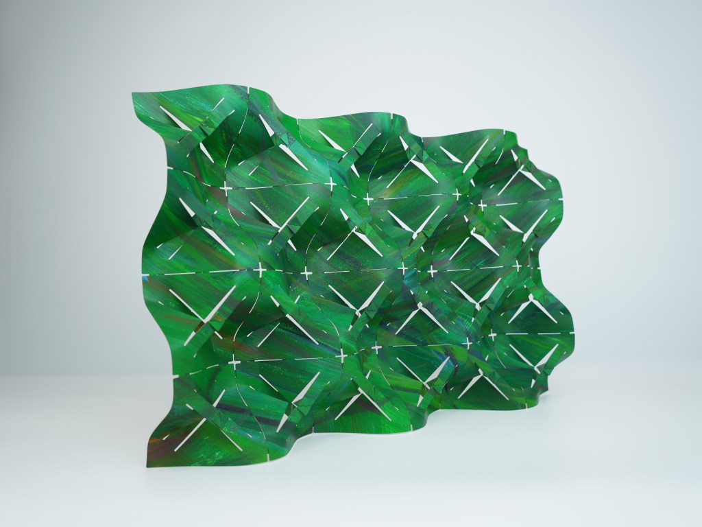 Tension-Active Form is a three-dimensional shaping method that Lyu has been exploring since 2018, and it was further deepened and expanded during his doctoral studies from 2022 to 2025. This technique applies tensile forces to planar materials—such as paper, thin wooden sheets, or woven fabrics with low elasticity—causing them to deform under tension and transform from a two-dimensional surface into a three-dimensional form. The resulting structures not only possess self-supporting strength but also exhibit inherent transformability. By altering the internal node connections, the form can shift between different dimensional states.
